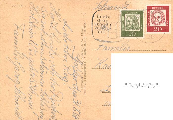 73166127 alte Postkarte Eutin Fliegeraufnahme Kirche postalisch gelaufen Erhaltung siehe scans [KathaD81] KatCode: 11110001055012