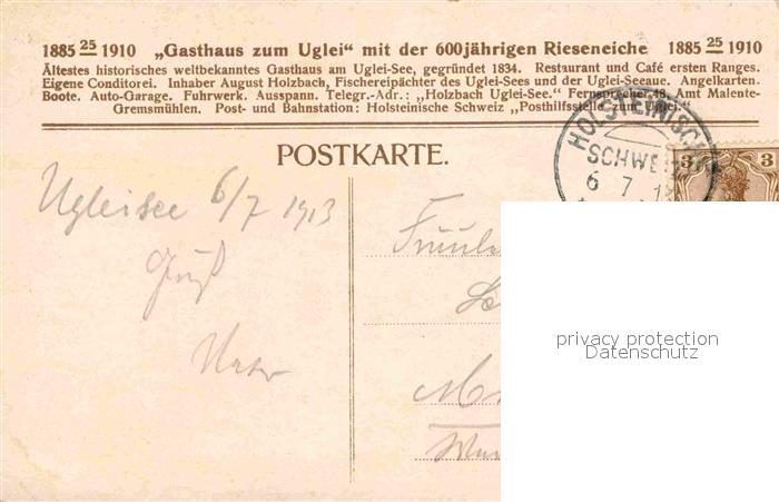 32819894 alte Postkarte Eutin Gasthaus zum Uglei mit 600jaehriger Rieseneiche postalisch gelaufen Erhaltung siehe scans [WerneD78] KatCode: 11110001055012