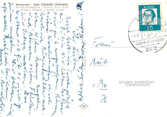 72970109 alte Postkarte Eutin Restaurant Fissauer Faehrhaus Ukleisee Kellersee postalisch gelaufen Erhaltung siehe scans [NatalD47] KatCode: 11110001055012