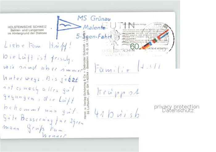 71850479 alte Postkarte Eutin Schleswig-Holstein Behlersee Langensee Dieksee Holsteinische Schweiz Fliegeraufnahme postalisch gelaufen Erhaltung siehe scans KatCode: 11110001055012