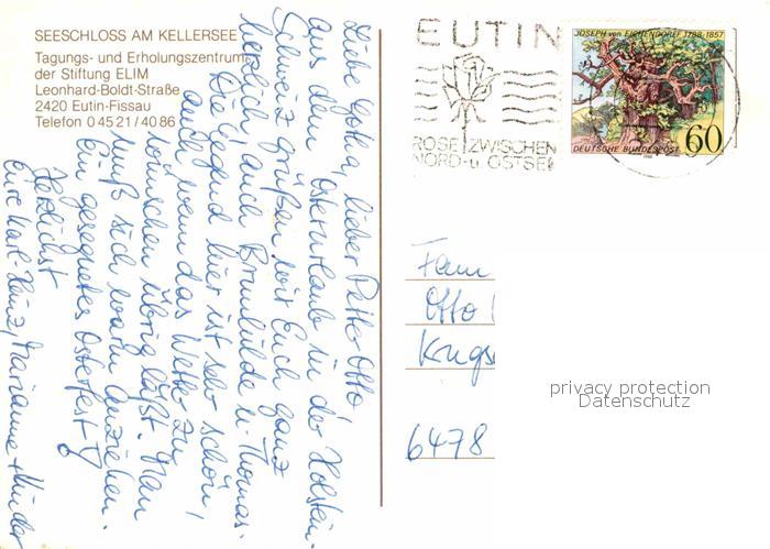 72886260 alte Postkarte Eutin Schleswig-Holstein Fissau Seeschloss am Kellersee postalisch gelaufen Erhaltung siehe scans [LiesaD40] KatCode: 11110001055012