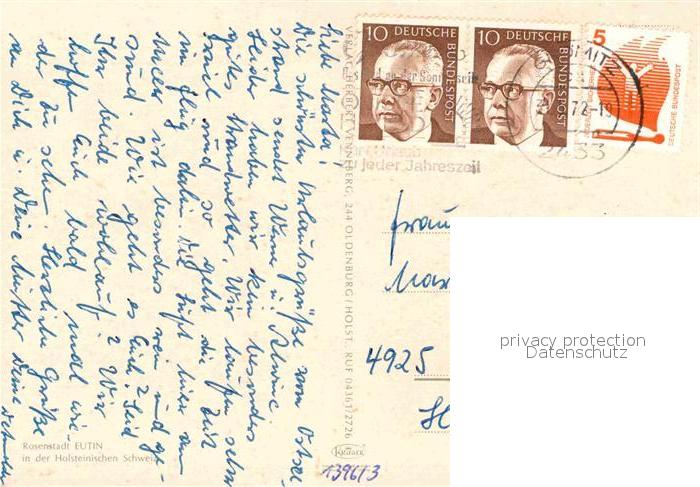 72742803 alte Postkarte Eutin Schleswig-Holstein Fliegeraufnahme postalisch gelaufen Erhaltung siehe scans [WerneD78] KatCode: 11110001055012