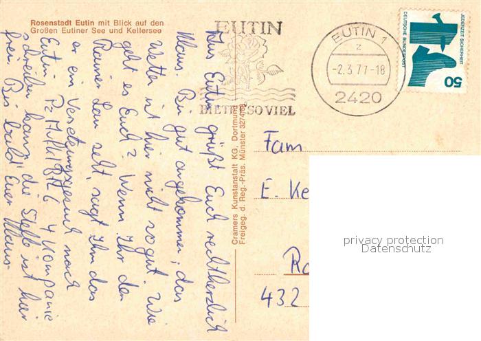 72771113 alte Postkarte Eutin Schleswig-Holstein Fliegeraufnahme mit Eutiner See und Kellersee postalisch gelaufen Erhaltung siehe scans [WerneD78] KatCode: 11110001055012