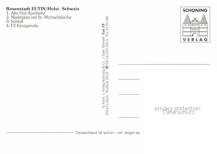 72654866 Eutin Schleswig-Holstein Hof-Apotheke Marktplatz Sankt Michaeliskirche postalisch nicht gelaufen Erhaltung siehe scans [AndreD76] KatCode: 11110001055012