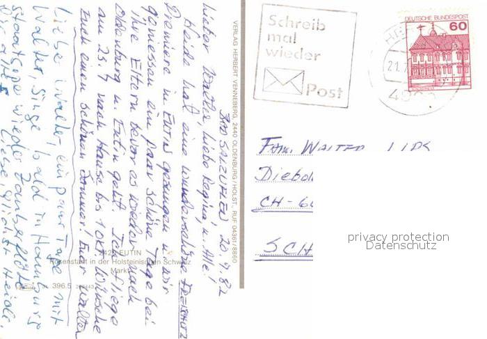72639586 alte Postkarte Eutin Schleswig-Holstein Markt Denkmal Kirche Rosenstadt Holsteinische Schweiz postalisch gelaufen Erhaltung siehe scans [FriedD77] KatCode: 11110001055012