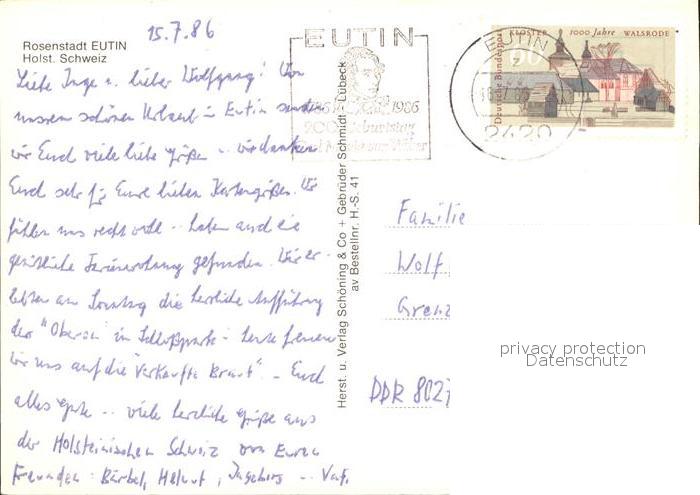72357792 alte Postkarte Eutin Schleswig-Holstein Marktplatz Kirche See Fussgaengerzone Brunnen Rosenstadt postalisch gelaufen Erhaltung siehe scans KatCode: 11110001055012