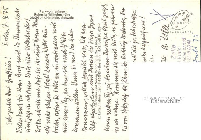 72496333 alte Postkarte Eutin Schleswig-Holstein Parkwohnanlage Ruhesitz Wilhelmshoehe Fliegeraufnahme postalisch gelaufen Erhaltung siehe scans KatCode: 11110001055012
