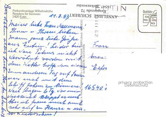 74110914 Eutin Schleswig-Holstein Parkwohnanlage Wilhelmshoehe Seniorenresidenz Fliegeraufnahme postalisch gelaufen Erhaltung siehe scans [WerneD78] alte Postkarte Wern Katcode 11110001055012