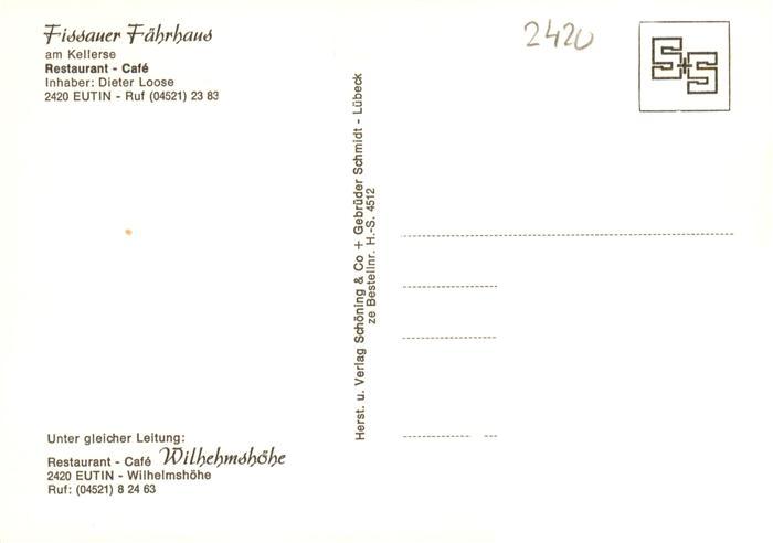 73940326 Eutin Schleswig-Holstein Restaurant Fissauer Faehrhaus am Kellersee Wilhelmshoehe Gastraeume postalisch nicht gelaufen Erhaltung siehe scans [FriedD77] Frie Katcode 11110001055012
