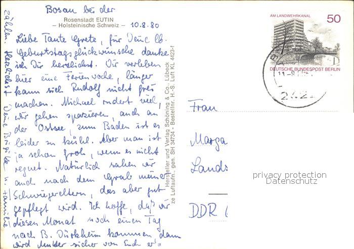 72469257 alte Postkarte Eutin Schleswig-Holstein Rosenstadt Holsteinische Schweiz Fliegeraufnahme postalisch gelaufen Erhaltung siehe scans KatCode: 11110001055012