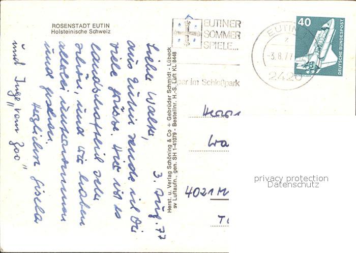 72155428 alte Postkarte Eutin Schleswig-Holstein Rosenstadt Naturpark Holsteinische Schweiz Fliegeraufnahme postalisch gelaufen Erhaltung siehe scans KatCode: 11110001055012