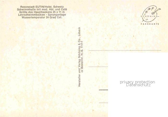 72841633 Eutin Schleswig-Holstein Rosenstadt Schwimmhalle postalisch nicht gelaufen Erhaltung siehe scans [LiesaD40] KatCode: 11110001055012