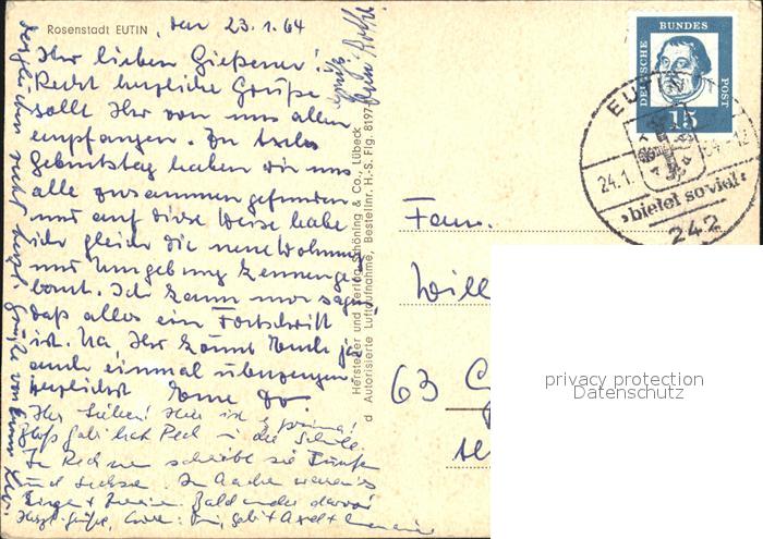 72429379 alte Postkarte Eutin Schleswig-Holstein Rosenstadt Stadtansicht postalisch gelaufen Erhaltung siehe scans KatCode: 11110001055012