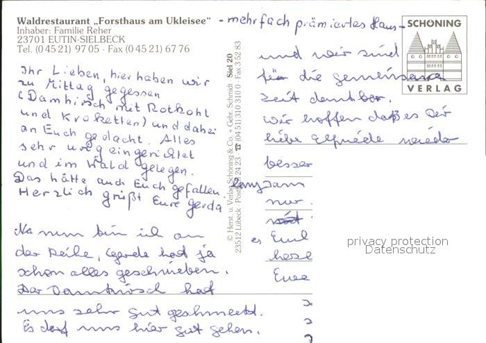 72523756 Eutin Schleswig-Holstein Sielbeck Waldrestaurant Forsthaus am Ukleisee postalisch nicht gelaufen Erhaltung siehe scans KatCode: 11110001055012