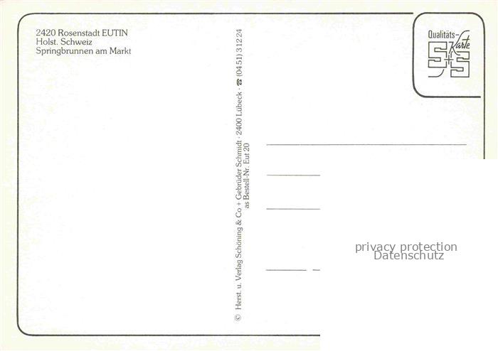 74040668 Eutin Schleswig-Holstein Springbrunnen am Markt postalisch nicht gelaufen Erhaltung siehe scans [FriedD77] Frie Katcode 11110001055012