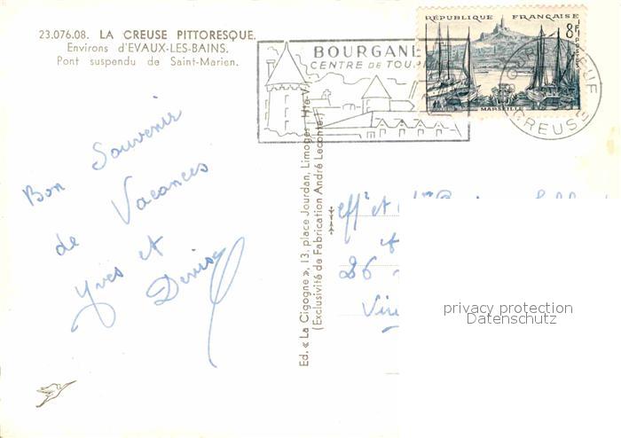 12698406 carte postale Evaux-les-Bains Pont suspendu de Saint Marien postalisch gelaufen Erhaltung siehe scans [WerneD78] KatCode: 11170023123076