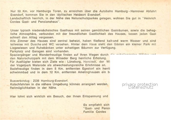 73101653 Evendorf Gast und Pensionshaus Heinrich Cordes postalisch nicht gelaufen Werbe-Etikett (keine Postkarte) Erhaltung siehe scans [WerneD78] KatCode: 11110003353009