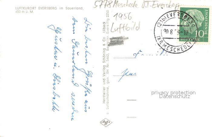 73705716 alte Postkarte Eversberg Fliegeraufnahme postalisch gelaufen Erhaltung siehe scans [WerneD78] KatCode: 11110005958032