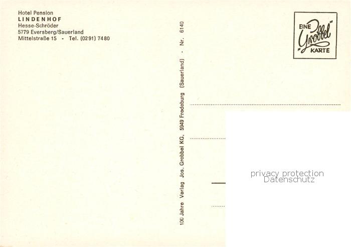 73846104 Eversberg Hotel Pension Lindenhof postalisch nicht gelaufen Erhaltung siehe scans [WerneD78] KatCode: 11110005958032