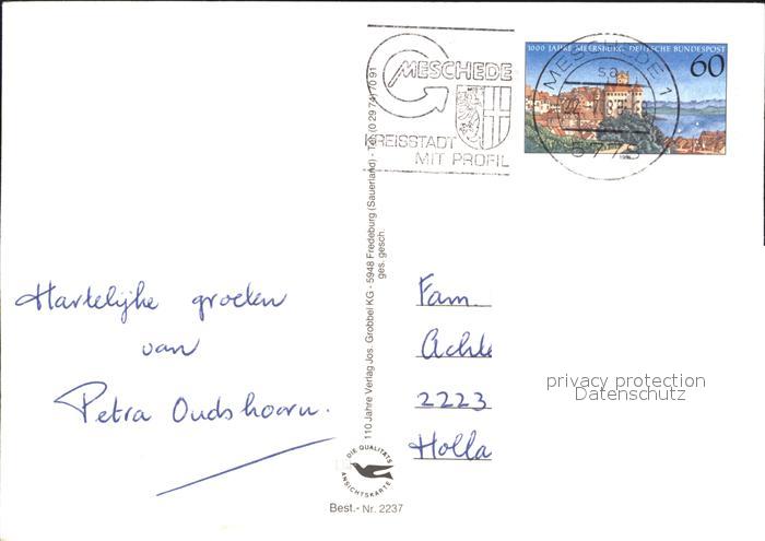 72283516 alte Postkarte Eversberg Katholische Kirche Burgruine Rathaus postalisch gelaufen Erhaltung siehe scans KatCode: 11110005958032