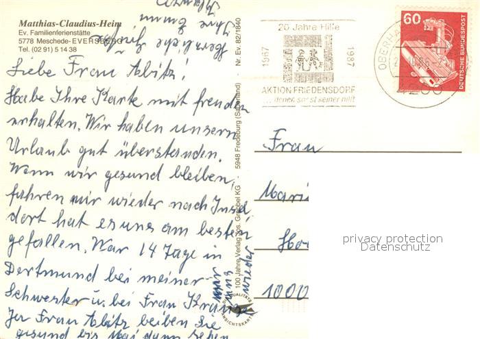 73614886 alte Postkarte Eversberg Matthias Claudius Heim postalisch gelaufen Erhaltung siehe scans [WerneD78] KatCode: 11110005958032