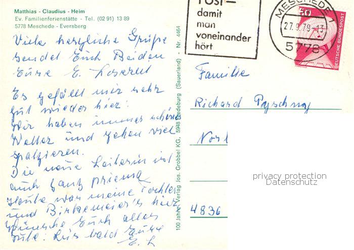 73858710 alte Postkarte Eversberg Matthias Claudius Heim postalisch gelaufen Erhaltung siehe scans [WerneD78] KatCode: 11110005958032