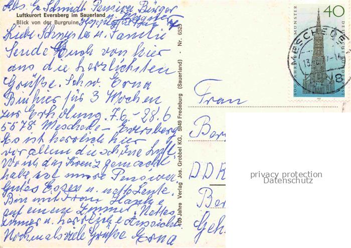 74023789 alte Postkarte Eversberg Meschede Panorama Luftkurort Blick von der Burgruine postalisch gelaufen Erhaltung siehe scans [FriedD77] KatCode: 11110005958032