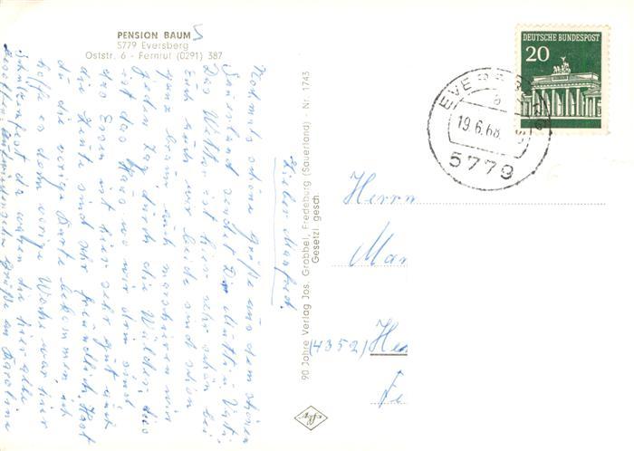 73869809 alte Postkarte Eversberg Meschede Pension Baum postalisch gelaufen Erhaltung siehe scans [FriedD77] KatCode: 11110005958032