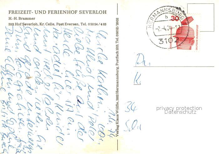 73642095 alte Postkarte Eversen Celle Freizeit und Ferienhof Severloh Bungalows Seepartie Lagerfeuer postalisch gelaufen Erhaltung siehe scans [WerneD78] KatCode: 11110003351004