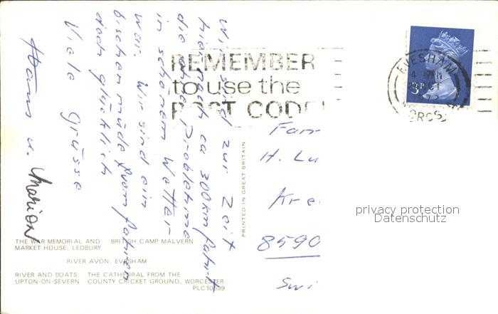 11777438 old postcard Evesham Wychavon Picturesque Worcestershire Memorial Cathedral River Camp postalisch gelaufen Erhaltung siehe scans KatCode: 11570UKG1G12UF
