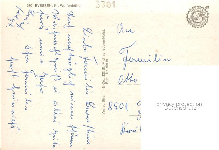 73861388 alte Postkarte Evessen Panorama Kirche Alter Baum postalisch gelaufen Erhaltung siehe scans [FriedD77] KatCode: 11110003158013