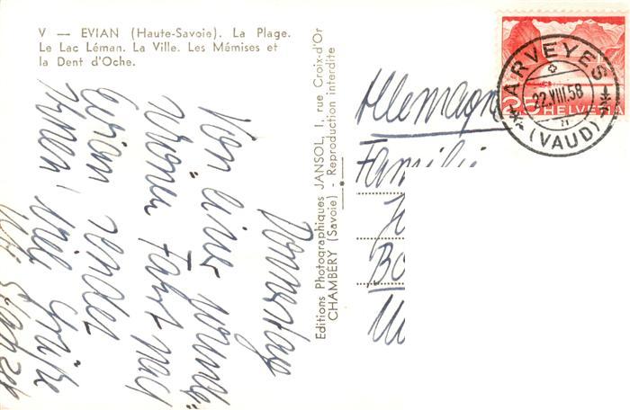 13950021 Evian-les-Bains 74 La Plage Lac Léman La Ville Les Mémises et la Dent d’Oche postalisch gelaufen Erhaltung siehe scans [FriedD77] carte postale Frie Katcode 11170074474119