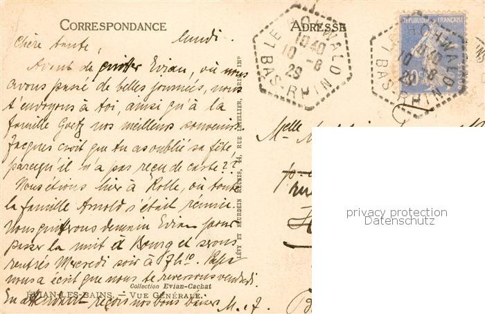 13788789 Evian-les-Bains 74 Teilansicht postalisch gelaufen Erhaltung siehe scans [LiesaD40] carte postale Lies Katcode 11170074474119