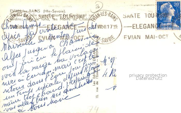 13488845 carte postale Evian-les-Bains Haute Savoie Casino et jardins Monts du Chablais Alpes vue aérienne postalisch gelaufen Erhaltung siehe scans [FriedD77] KatCode: 11170074474119