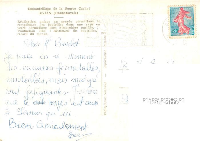 13640341 Evian-les-Bains Haute Savoie Embouteillage de la Source Cachat postalisch gelaufen Erhaltung siehe scans [FriedD77] carte postale Frie Katcode 11170074474119