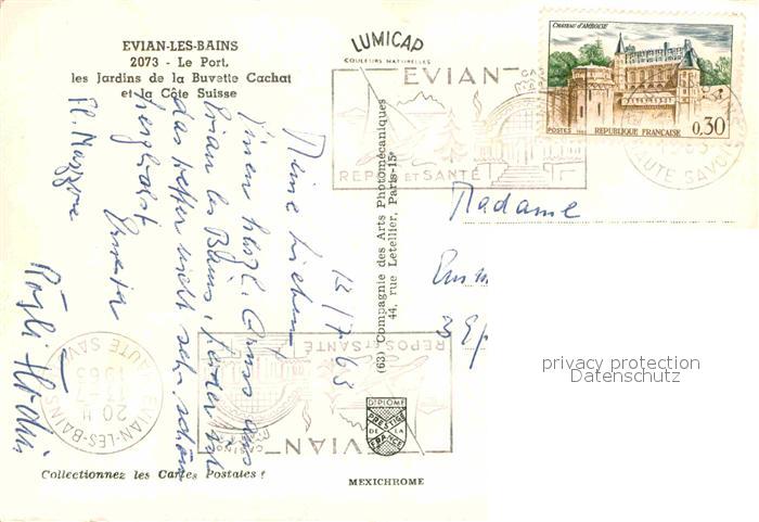 12641780 carte postale Evian-les-Bains Haute Savoie Jardins de la Buvette Cachat Cote Suisse postalisch gelaufen Erhaltung siehe scans [KathaD79] KatCode: 11170074474119