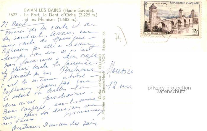 12754335 carte postale Evian-les-Bains Haute Savoie Le Port la Dent d Oche et les Memises vue aerienne postalisch gelaufen Erhaltung siehe scans [FriedD77] KatCode: 11170074474119
