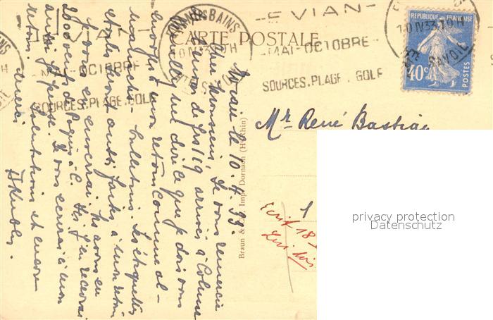 13489761 carte postale Evian-les-Bains Haute Savoie Maison L’Alsace postalisch gelaufen Erhaltung siehe scans [FriedD77] KatCode: 11170074474119