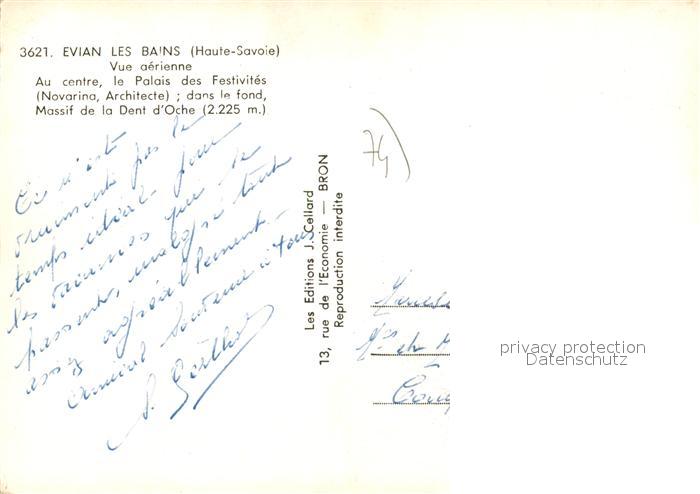 13154778 carte postale Evian-les-Bains Haute Savoie Palais des Festivites Flugaufnahme postalisch gelaufen Erhaltung siehe scans [KathaD81] KatCode: 11170074474119