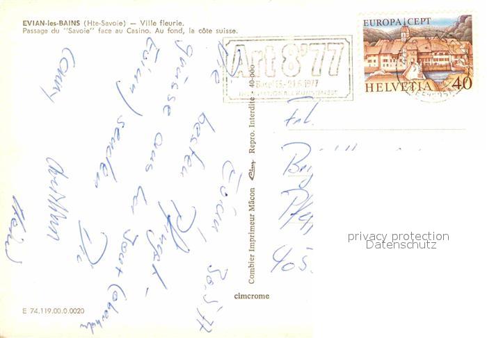 12647852 carte postale Evian-les-Bains Haute Savoie Passage du Savoie face au Casino Lac Leman Rosen Faehre Genfersee postalisch gelaufen Erhaltung siehe scans [FriedD77] KatCode: 11170074474119