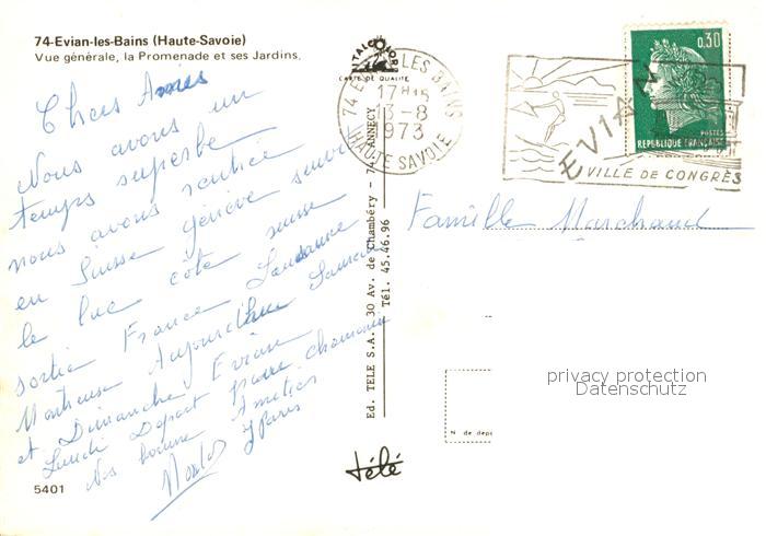 13536479 carte postale Evian-les-Bains Haute Savoie Promenade et ses jardins Montagnes vue aérienne postalisch gelaufen Erhaltung siehe scans [FriedD77] KatCode: 11170074474119