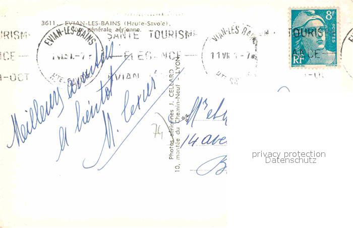 12705943 carte postale Evian-les-Bains Haute Savoie Vue generale aerienne Alpes postalisch gelaufen Erhaltung siehe scans [FriedD77] KatCode: 11170074474119