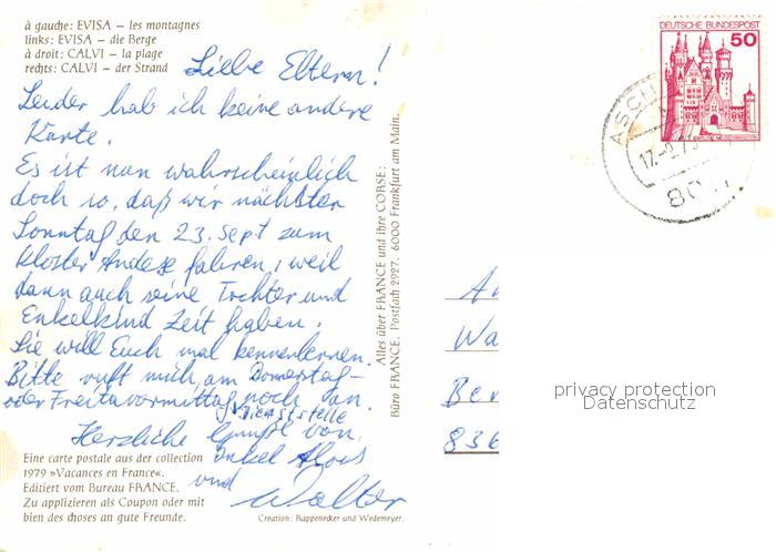12840169 carte postale Evisa und Calvi postalisch gelaufen Erhaltung siehe scans [WerneD78] KatCode: 1117002A12A108
