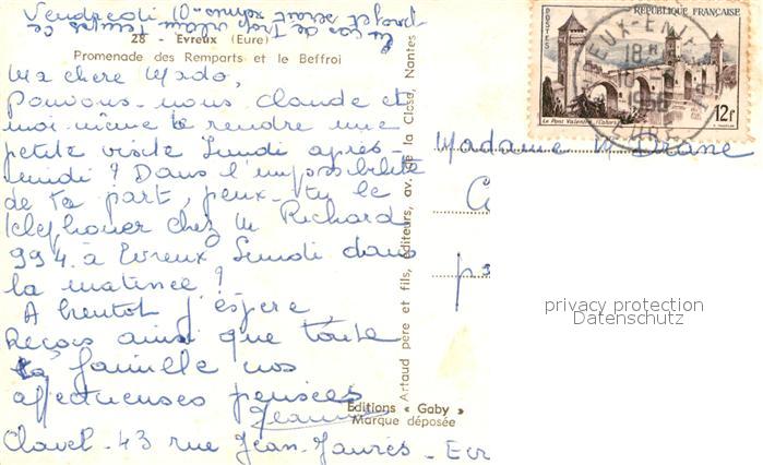 12932746 carte postale Evreux Promenade des Remparts postalisch gelaufen Erhaltung siehe scans [AndreD76] KatCode: 11170027327229