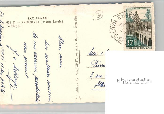 13489894 carte postale Excenevex La Plage Lac Leman postalisch gelaufen Erhaltung siehe scans [FriedD77] KatCode: 11170074474121