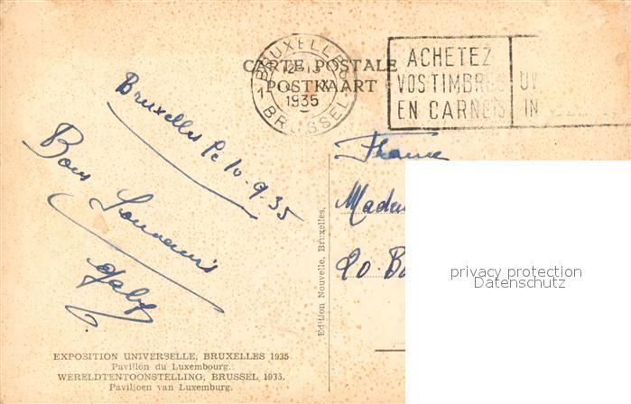 73589464 carte postale Exposition Bruxelles 1935 Pavillon du Luxembourg postalisch gelaufen Erhaltung siehe scans [PaolaD17] KatCode: 11070021003403