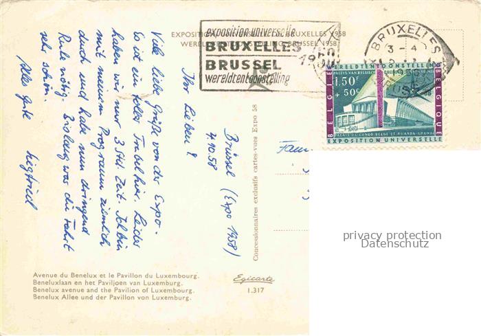 74151073 carte postale Exposition Bruxelles 1958 Benelux Allee Pavillon Luxemburg Seilbahn postalisch gelaufen Erhaltung siehe scans [IrynaD87] KatCode: 11070021003403