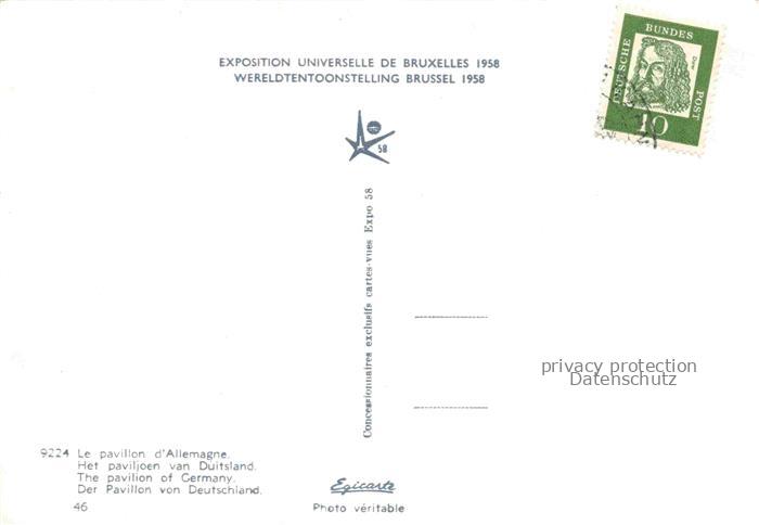 74021451 carte postale Exposition Bruxelles 1958 Pavillon Allemagne postalisch gelaufen Erhaltung siehe scans [SanaeD93] KatCode: 11070021003403