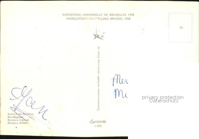 Exposition Universelle Bruxelles 1958 Avenue de Benelux postalisch nicht gelaufen Erhaltung siehe scans