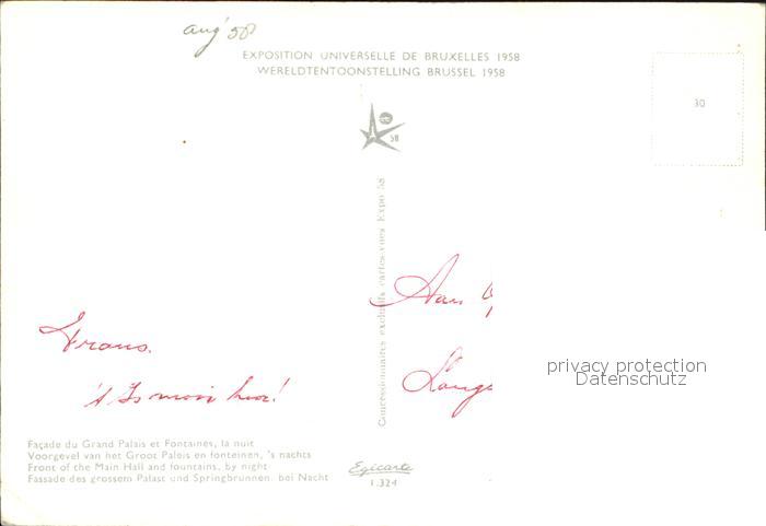 Exposition Universelle Bruxelles 1958 Facede du Grand Palais et Fontaines postalisch nicht gelaufen Erhaltung siehe scans [PaolaD17]